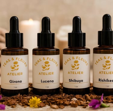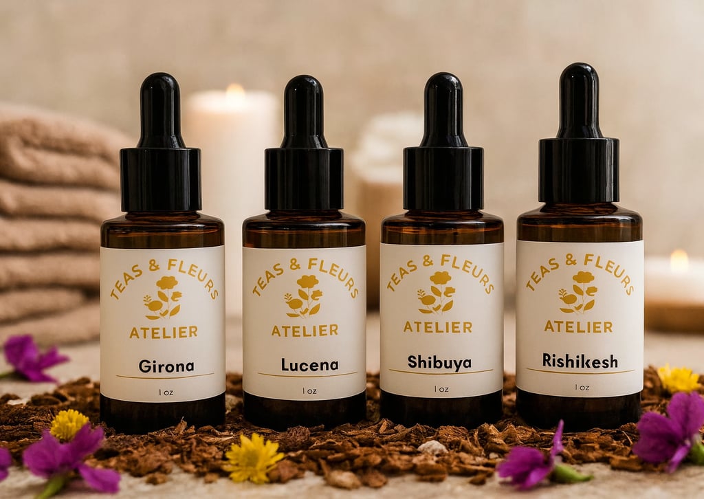 Calming Organic Botanical Extracts: apricot kern oil, chamomile oil, argan oil infused with blend of organic botanical & herbal teas & flowers: black pepper, black tea, cardamom, chamomile, cinnamon, red clove, darjeeling, ginger, green tea, lavender, lemon verbena, lemongrass, peppermint, spearmint, star anise, tarragon & fragrance inspired by India.